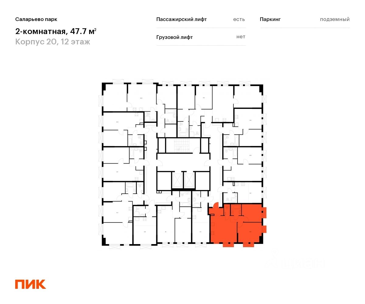 Продаётся 2-комн. квартира площадью 47,7 кв.м на 12 этаже 17 этажного дома (Корпус 20, Секция 1) проекта ПИК Саларьево парк. Светлый просторный подъезд на уровне земли, функциональная планировка, большие окна, c отделкой.