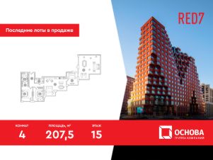 Продаются светлые 4-комнатные апартаменты площадью 207.50 кв. м, на 15 этаже престижного комплекса RED7, расположенного в самом центре Москвы, на первой линии Садового кольца. До Кремля всего 2,4 км. В шаговой доступности метро "Красные Ворота", Чистые пруды, уютные парки, театры, рестораны и все городские удобства.