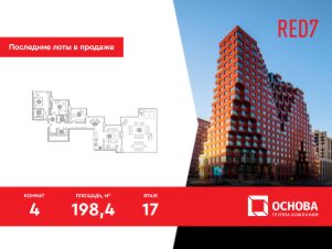 Продаются светлые 4-комнатные апартаменты площадью 198.40 кв. м, на 17 этаже престижного комплекса RED7, расположенного в самом центре Москвы, на первой линии Садового кольца. До Кремля всего 2,4 км. В шаговой доступности метро "Красные Ворота", Чистые пруды, уютные парки, театры, рестораны и все городские удобства.