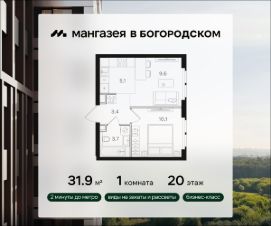 Предлагается квартира площадью 31.90 кв. м в новом современном квартале на востоке Москвы, прямо у станций метро и МЦК "Бульвар Рокоссовского". Квартира располагается в корпусе 3 на 20 этаже комплекса бизнес-класса "Мангазея в Богородском".