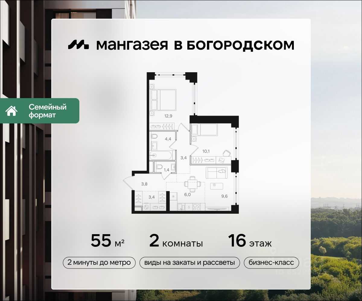 Предлагается квартира площадью 55.00 кв. м в новом современном квартале на востоке Москвы, прямо у станций метро и МЦК "Бульвар Рокоссовского". Квартира располагается в корпусе 5 на 16 этаже комплекса бизнес-класса "Мангазея в Богородском".