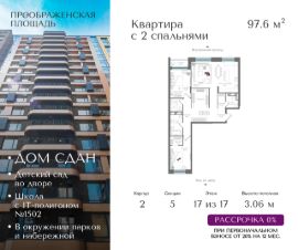 Квартира на 17 этаже в жилом комплексе премиум-класса "Преображенская площадь". Общая площадь: 97.6 кв.м.