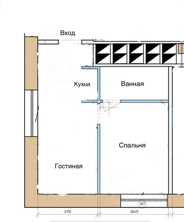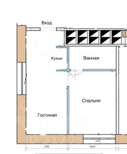 - Совмещённая кухня-гостиная с раскладным диваном и вместительным шкафом