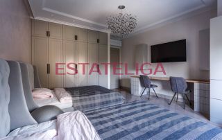 Id 52691. Продается пятикомнатная квартира для большой семьи с премиальной отделкой в современном стиле в ЖК Фили Град. Топовая локация - 5 минут пешком до набережной Москва-реки с велодорожками и речным трамваем с живописные виды на небоскрёбы делового центра Москва Сити и реку. Функциональная планировка квартиры, разработанная по индивидуальному дизайн-проекту: просторная кухня-гостиная с зоной под пианино, приватная спальня с гардеробной комнатой, три детские комнаты, два санузла один с ванной, другой с душем, гардеробная комната, две лоджии, просторный холл. Качественный ремонт с использованием премиальных материалов, которые прослужат еще много лет. Ремонт делали для себя! В отделке использовались экологические материалы - паркет, камень, керамогранит. Вся мебель и сантехника от топ-европейских производителей. Бытовая техника Liebherr и Smeg: два холодильника + винный холодильник, большая варочная панель с тремя духовыми шкафами, мощная вытяжка, посудомоечная машина, стиральная машина с сушкой. Установлен кондиционер в каждой комнате. Теплые полы в санузлах. Входная дверь с доступом по отпечатку пальца. В квартире очень тихо, соседи только по одой стене в детской комнате (сделана звукоизоляция), остальные стены "соседствуют" с улицей. В квартире есть абсолютно всё для комфортного проживания. Квартира идеально подойдет семье - вы сможете заехать сразу, не делая никаких вложений! Квартира продается со всей встроенной мебелью и техникой! Свободная продажа, два взрослых собственника, возможна ипотека любого банка! Полная стоимость в ДКП Преимущества жилого комплекса "Фили Град" — это идеальное расположение и транспортная доступность: рядом с комплексом располагается "Москва-Сити" и исторический центр Москвы, в 12 минутах пешком от м."Фили" и м."Шелепиха" (5 минут на автобусе 653, который ходит каждые 3 минуты), прямой выезд на ТТК. Фили Град относится к одной из самой перспективной и развивающейся в Москве территории "Большого Сити". Рядом протекает Москва-река, благоустроена пешеходная набережная. По проекту набережную достроят дальше и в будущем ее объединят с Филёвской набережной и набережной Музеона. В пешей доступности находится прекрасный Филевский парк, который придает комплексу отличное экологическое окружение. Инфраструктура комплекса позволит жителям чувствовать себя комфортно - в ЖК есть ТЦ "Фили Град", в который можно попасть не выходя на улицу через паркинг. ТЦ "Фили Град" - это фитнес-клуб с бассейном, кафе и рестораны, магазин Перекресток, салоны красоты, зоомагазин, аптеки, химчистки, гостевой паркинг и не только! На территории 1 очереди Фили Града работает детский сад с углубленным знанием английского и начальная школа, располагается отличная детская площадка, территория закрытая и охраняемая, подземный паркинг на 1000 мест. Район Филевский парк отличается хорошей экологией: более трети территории занимают зеленые зоны, в скором времени построится шикарная набережная возле Москвы-реки, в пешей доступности находят