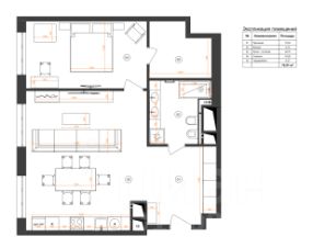 Планировка :кухня-гостиная и спальня с гардеробной, санузел с душевой и разделением на двух персон, холл-гардеробная.