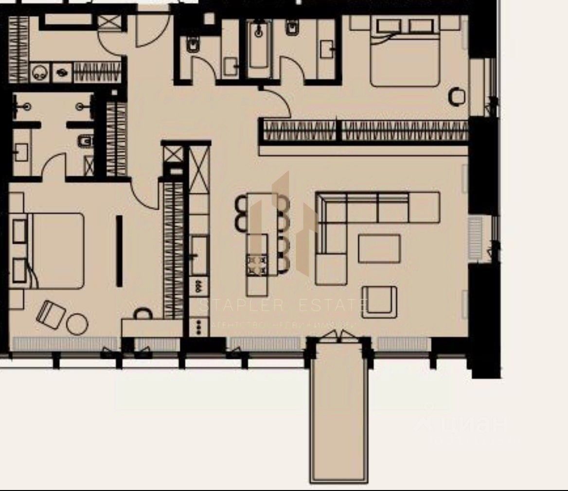 - главная спальня с просторной гардеробной и ванной комнатой;