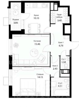 В клубной секции ЖК Нормандия продаются жилые 2-х комнатный апартамент площадью 62.5 кв.м., расположенные на 4 этаже 10 этажной клубной секции, всего на 27 апартаментов.