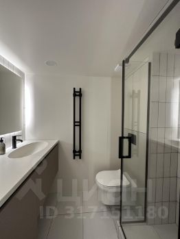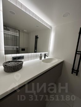 Зеркала придают апартаменту особый шарм. В ванной комнате установлена встроенная стиральная машина, столешница для тумбы выполнена из литого искусственного мрамора, установлен видеодомофон.