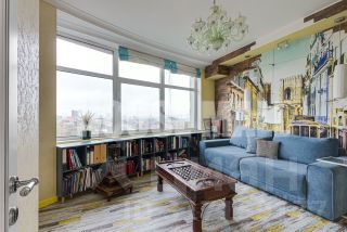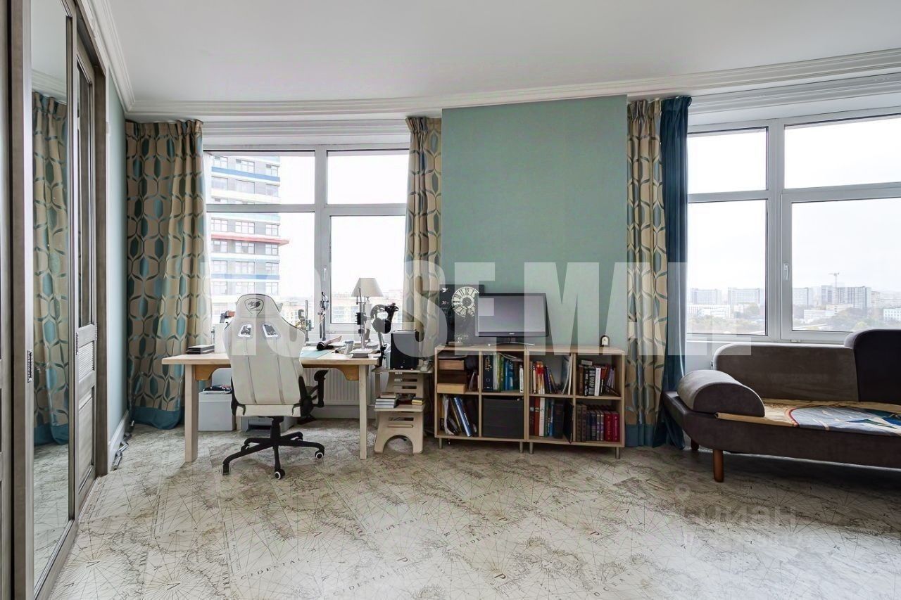 Самое удачное расположение квартиры по видовым характеристикам, окна выходят на Парк-Акведук, ВВЦ и центр Москвы. Использованы только экологически-чистые материалы, немецкая сан. техника, мебель из Италии. В квартире установлена приточно-вытяжная система и кондиционер, подогрев полов, установлены 2-х камерные стеклопакеты.