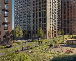 Проект задуман небольшим и уютным - в нём будет всего 4 корпуса с переменной высотой: 28, 33 и 38 этажей с подземным паркингом. Не территории мы построим детский сад на 150 малышей и школу для 350 учеников. А во дворе - зелёный парк с детскими и спортивными площадками и зонами для отдыха. На первых этажах откроются магазины, кафе и другие сервисы.