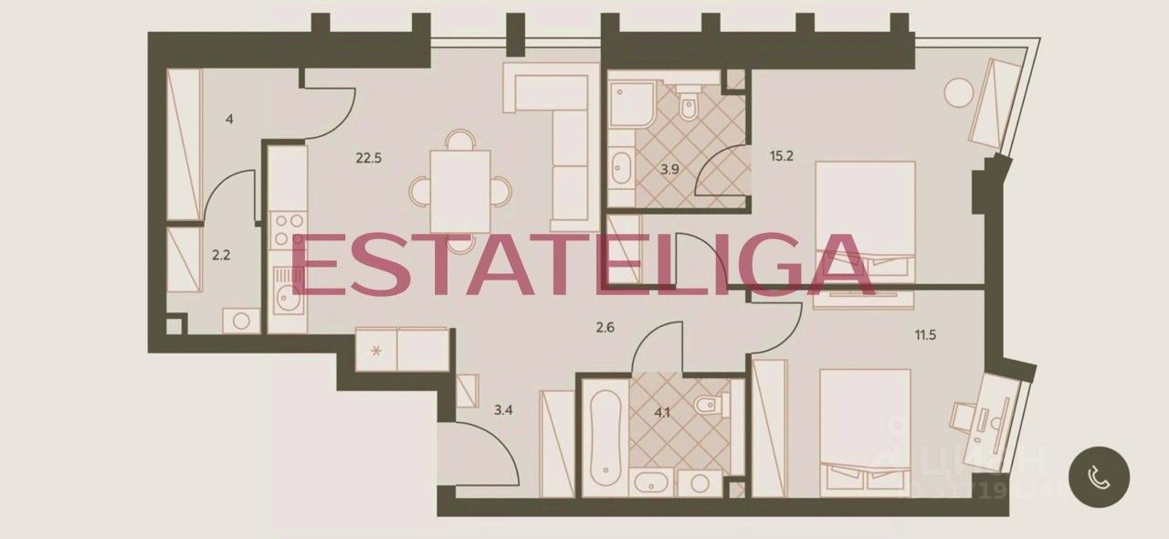 - Просторная трехкомнатная квартира с продуманной планировкой предлагает высокий уровень комфорта и стиля.