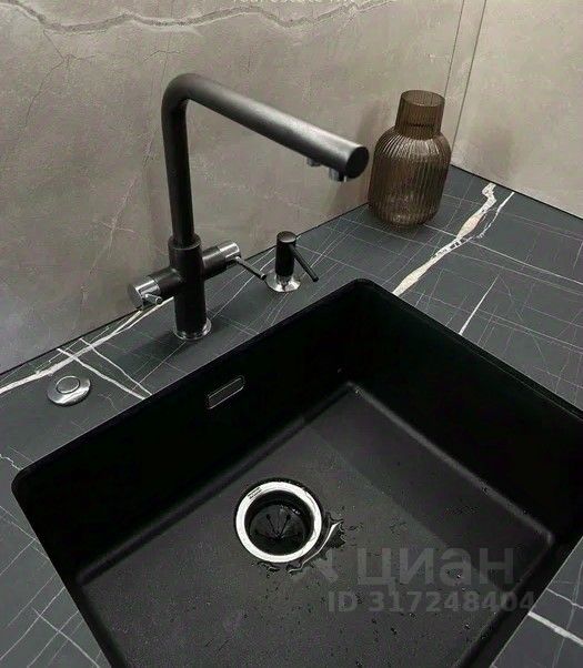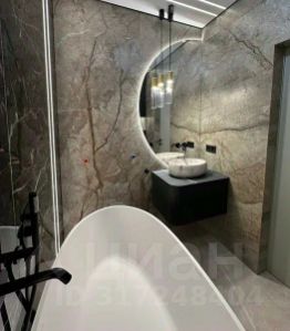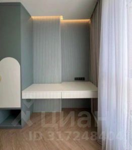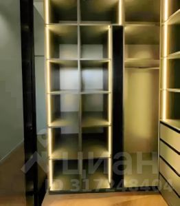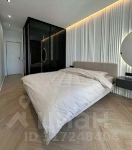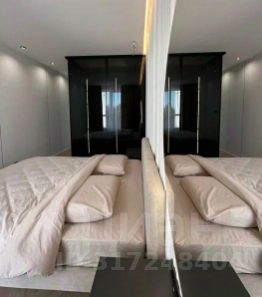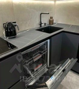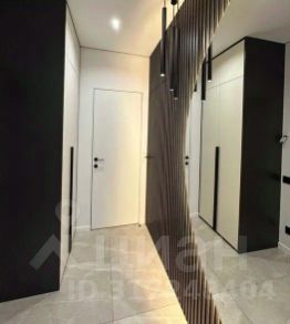Высокие потолки — 3 метра. Отделка в светлых тонах, встроенная кухня с техникой, скрытые двери, два кондиционера. В санузле — стиральная и сушильная машины.
