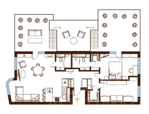 Мастер-спальня со своей гардеробной и санузлом. Детская спальня может использоваться как гостевая комната или кабинет. Окна спален выходят во внутренний двор - тишина в уединении обеспечена. Многоуровневая система освещения позволяет создать любой сценарий в зависимости от настроения или времени суток.