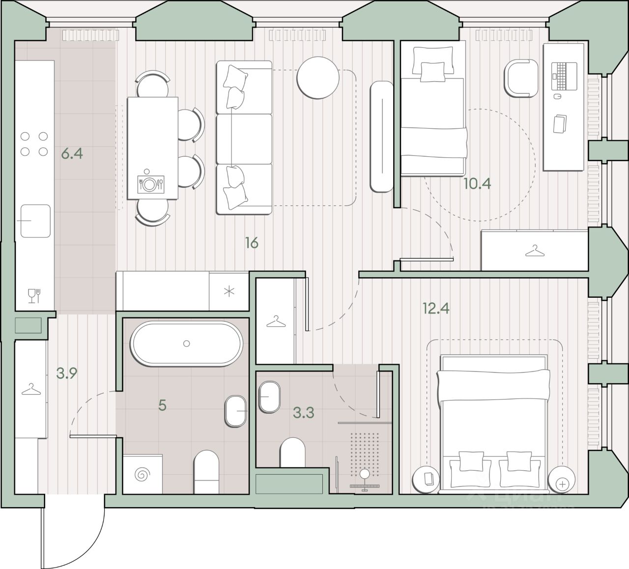 Продаётся 2-комнатная квартира общей площадью 57.4 кв.м. с отделкой white box. Квартира расположена на 9 этаже корпуса 5.1 в жилом комплексе бизнес-класса "Среда на Лобачевского" в пешей доступности от метро "Аминьевская".