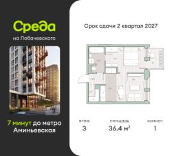 Продаётся 1-комнатная квартира общей площадью 36.4 кв.м. с отделкой white box. Квартира расположена на 3 этаже корпуса 5.1 в жилом комплексе бизнес-класса "Среда на Лобачевского" в пешей доступности от метро "Аминьевская".