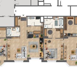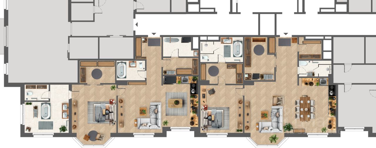 • 2 мастер-спальни с 2 гардеробными и 2 ванными комнатами