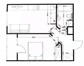 Общая площадь 40,6 кв.м. Высота потолков 2,7 м.