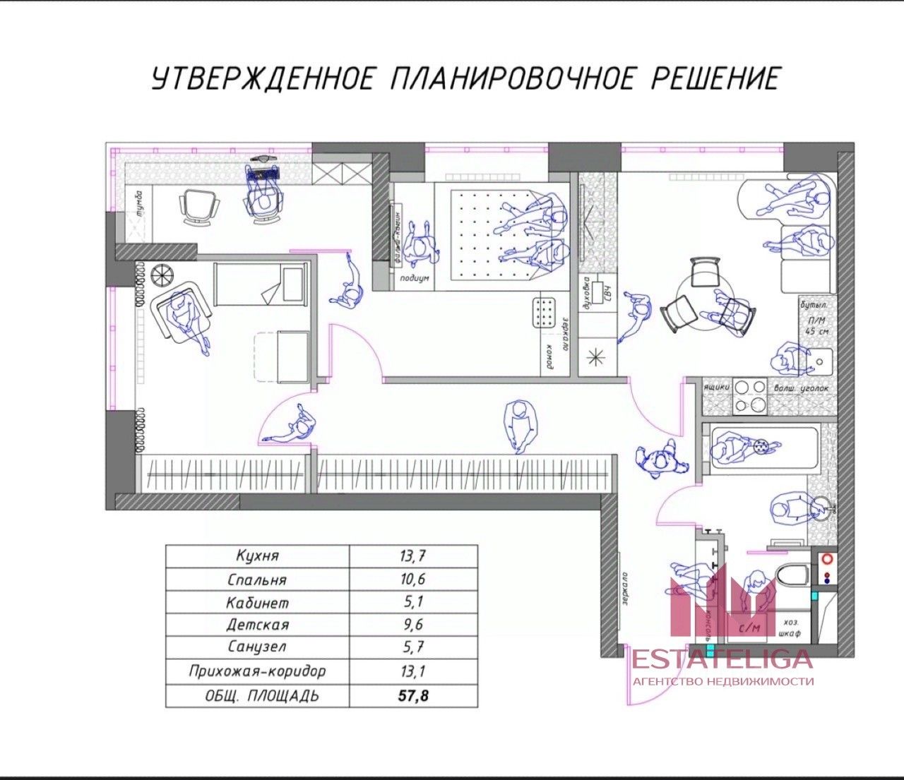 Id 53091. В продаже квартира формата евро-три 57,8 м²