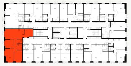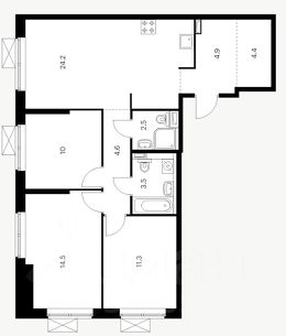 Три спальни. Большая прихожая-гардеробная 9м.кв. Два санузла. Гостиная с зоной кухни.