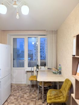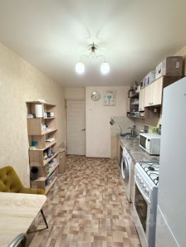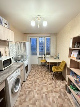 **Качественный ремонт** — ламинат в комнате, линолеум на кухне, натяжные потолки, современные стеклопакеты.