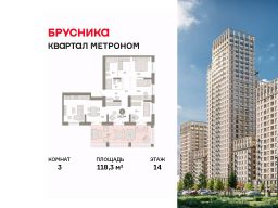 Квартира с кухней-гостиной и тремя спальнями в квартале "Метроном". Особенности планировки: без отделки, вид во двор, гардеробная, мастер-спальня, окна в пол, окна на две стороны, свободная планировка, терраса, терраса на крыше.