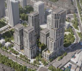 Квартал "Издание" пронизан атмосферой локации, её энергетикой. Она воплощена в общей композиции, чистоте её форм, в графичных и динамичных силуэтных линиях. Дом на едином стилобате с корпусами от 15 до 43 этажеи поддерживают идею монументальности и одновременной лёгкости, но при этом у каждого из них сформировался свой характер. "Игра" с разными высотами, текстурой и формой фасадов позволила запустить в квартиры и дворы больше света, сделать пространства между домами проницаемыми и воздушными. Застройщик — компания Брусника.