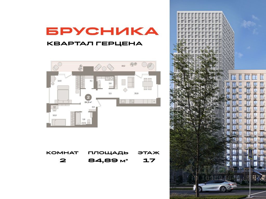Квартира с кухней-гостиной и двумя спальнями в квартале Герцена. Особенности планировки: гардеробная, предчистовая отделка, терраса, постирочная. Эта квартира сейчас в брони, но её ещё не купили. Пожалуйста свяжитесь с менеджером, чтобы узнать подробности.
