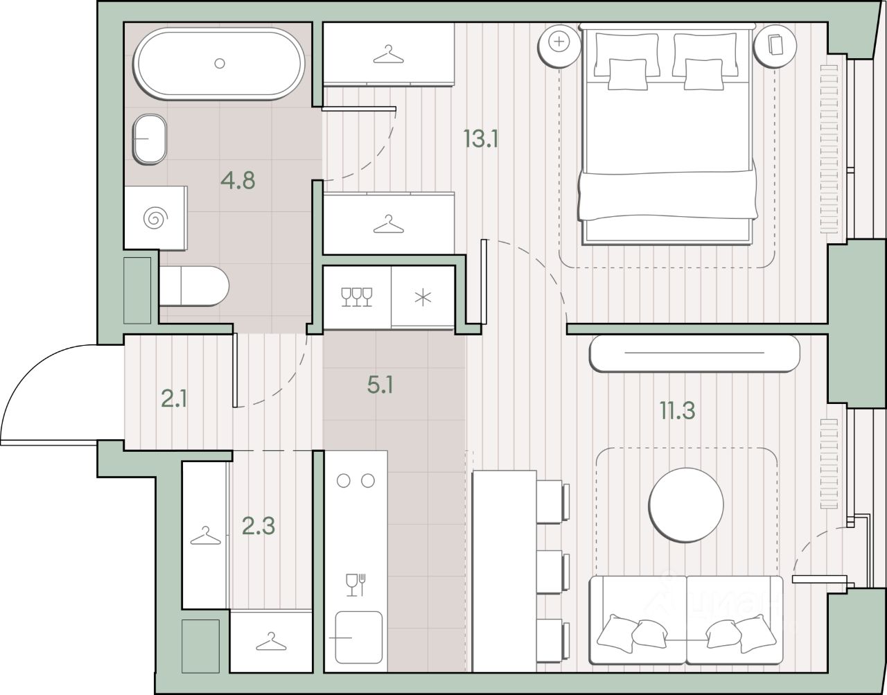 Продаётся 1-комнатная квартира общей площадью 38.7 кв.м. без отделки. Квартира расположена на 13 этаже корпуса 5.5 в жилом комплексе бизнес-класса "Среда на Лобачевского" в пешей доступности от метро "Аминьевская".