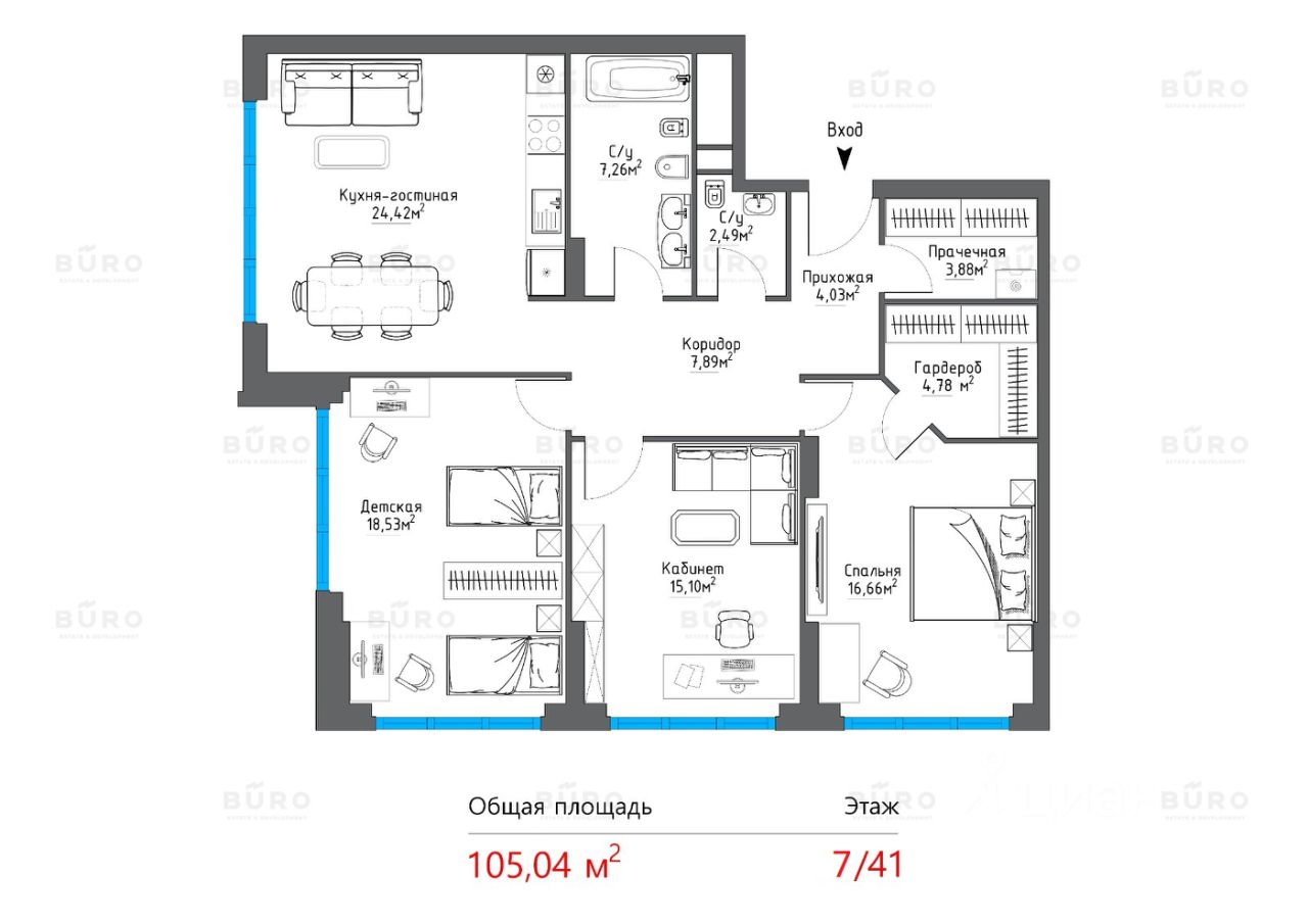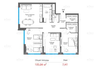 Предлагаем просторную 3-комнатную квартиру, общей площадью 105.04 м², на 7-этаже 41-этажного высотного дома в ЖК Headliner в престижном Пресненском районе (ЦАО), в 5 минутах от Москва-Сити.