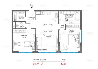 Предлагаем просторную 2-комнатную квартиру, общей площадью 70,71м², на 9-этаже 41-этажного высотного дома в ЖК Headliner в престижном Пресненском районе (ЦАО), в 5 минутах от Москва-Сити.