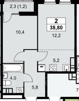Двухкомнатная квартира 39,1 метра на 10 этаже.