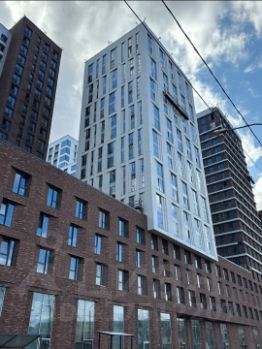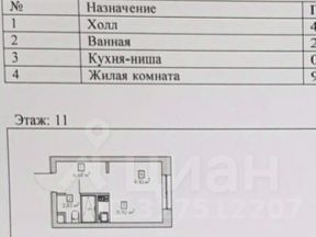 Площадь студии - 17.31 кв.м., располагается на 11 этаже в 5 корпусе. Панорамные окна, высота потолков- 3м.