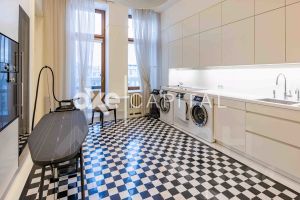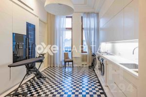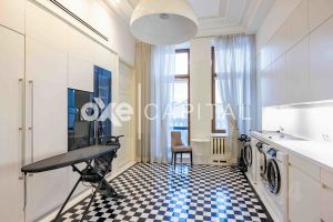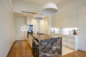 • Квартира предлагается с дорогой дизайнерской отделкой с использованием натурального камня и дерева, лепниной и дубовым паркетом. Пространство полностью меблировано и оснащено бытовой техникой и сантехникой премиум-класса.
