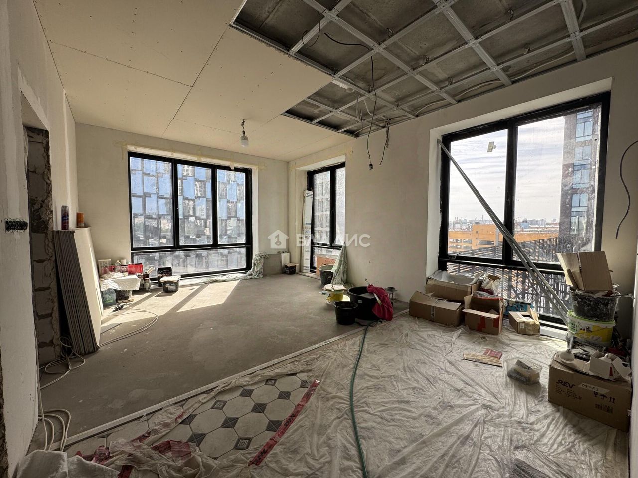 В квартире проведены черновые работы под отделку, положена плитка в санузле, на полу в коридоре, гардеробной и кухне.