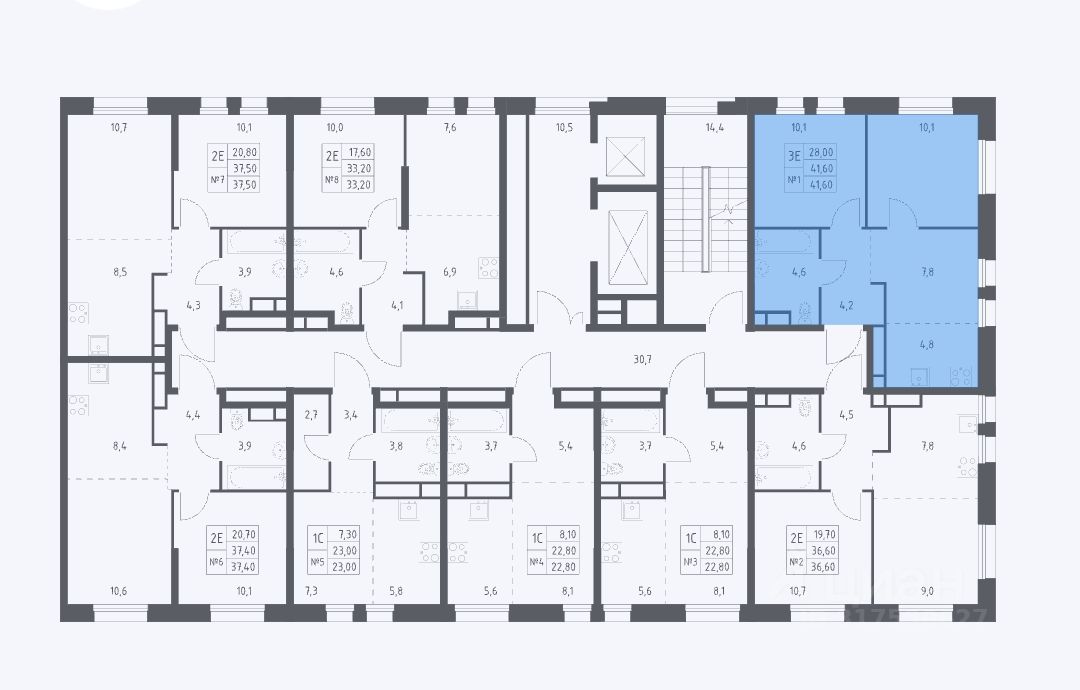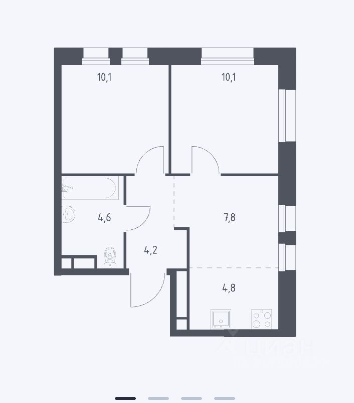 2-комн. квартира, 41,6 м2 в ЖК Квартал на