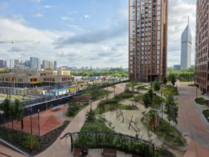 В Комплексе Огороженная охраняемая территория, видеонаблюдение 24/7. Дворы и центральный парк квартала утопают в зелени. Разноуровневый ландшафт с холмами, горками, высокими деревьями и кустарниками в человеческий рост создает ощущение настоящих, а не каменных джунглей.