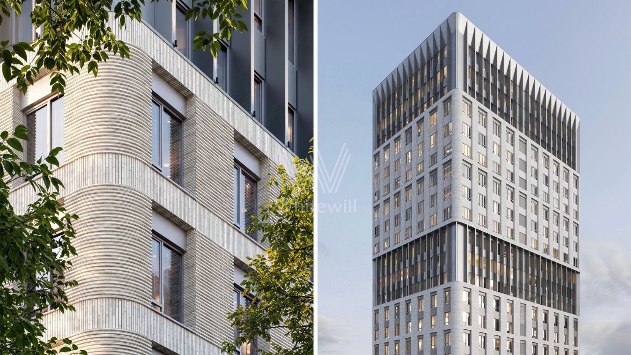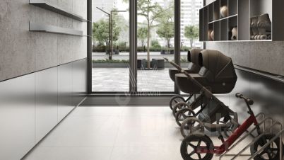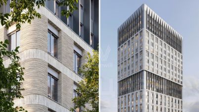Главное о доме. STONE Sokolniki стоит рядом с парком "Сокольники", поэтому в окнах — зелень и широкое небо. Три корпуса разной высоты образуют ясный силуэт квартала. Фасады читаются рельефом и вертикальными ламелями, крупное остекление тянет внутрь свет. В лобби — натуральный камень, мягкий свет, кресла и стойка ресепшн. На стилобате устроили двор без машин с аллеями, детскими и спортивными площадками и тихими уголками для пауз. На территории запланировали детский сад и повседневные сервисы на первых этажах. Многоуровневый паркинг со спуском на лифте связывает уровень улицы и жилые этажи.