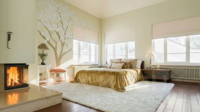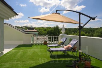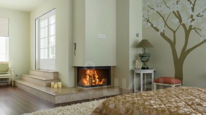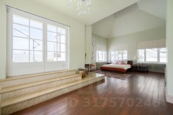 Третий уровень: мансарда с потолками высотой 4 метра. Здесь обустроена мастер-спальня с камином и своим санузлом, гардеробная, выход на обширную трехстороннюю террасу.