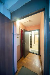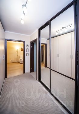 • Просторный коридор с встроенным шкафом для одежды до потолка и шкафом по длине коридора с полками;