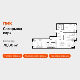 Продаётся 3-комн. квартира площадью 78 кв.м на 13 этаже 14 этажного дома (Корпус 69.2, Секция 2) проекта ПИК Саларьево парк. Светлый просторный подъезд на уровне земли, функциональная планировка, большие окна, c отделкой.