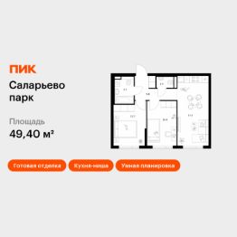Продаётся 2-комн. квартира площадью 49,4 кв.м на 13 этаже 14 этажного дома (Корпус 69.2, Секция 2) проекта ПИК Саларьево парк. Светлый просторный подъезд на уровне земли, функциональная планировка, большие окна, c отделкой.