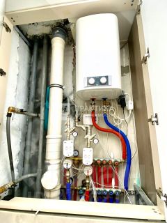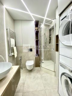 ВАННАЯ КОМНАТА: установлена система "Умный дом", фиксирующая показания счетчиков воды для передачи в соответствующие организации, контроль протечек и автоматическое отключение воды в случае их обнаружения, фильтры грубой очистки воды, индивидуальный водонагреватель на период сезонного отключения горячей воды. Испанская плитка и раковина Porcelanosa. Инсталляция - Geberit, унитаз - Laufen. Есть гигиенический душ.