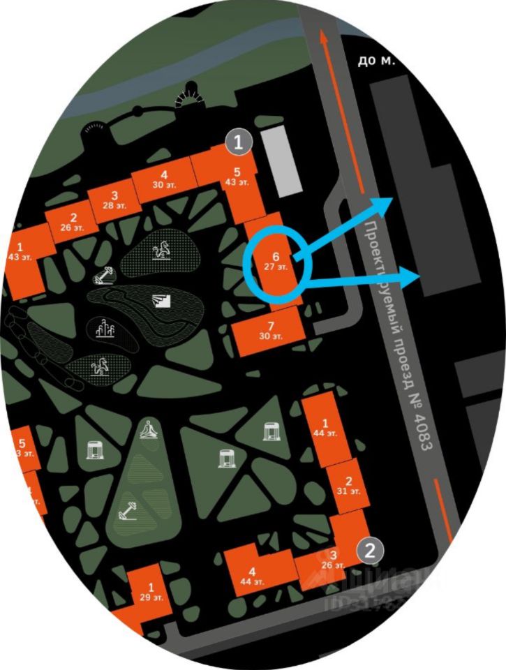 ВИДОВОЙ 27 этаж 1 корпуса (последний этаж в этом корпусе, над вами не будет ремонтов и соседей). ВИД на ПАРК (см. на фото, где горят окошки)