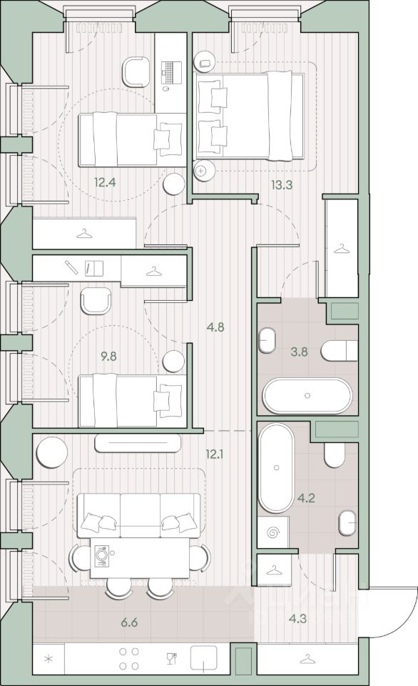 Продаётся 3-комнатная квартира общей площадью 71.3 кв.м. с отделкой white box. Квартира расположена на 11 этаже корпуса 5.1 в жилом комплексе бизнес-класса "Среда на Лобачевского" в пешей доступности от метро "Аминьевская".