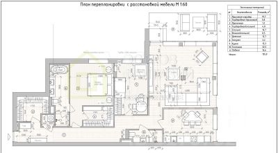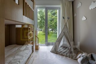 Планировка: прихожая c гардеробной комнатой, кухня, гостиная с выходом на летнюю террасу, постирочная комната, мастер спальня с ванной и гардеробной комнатой, детская комната, санузел.