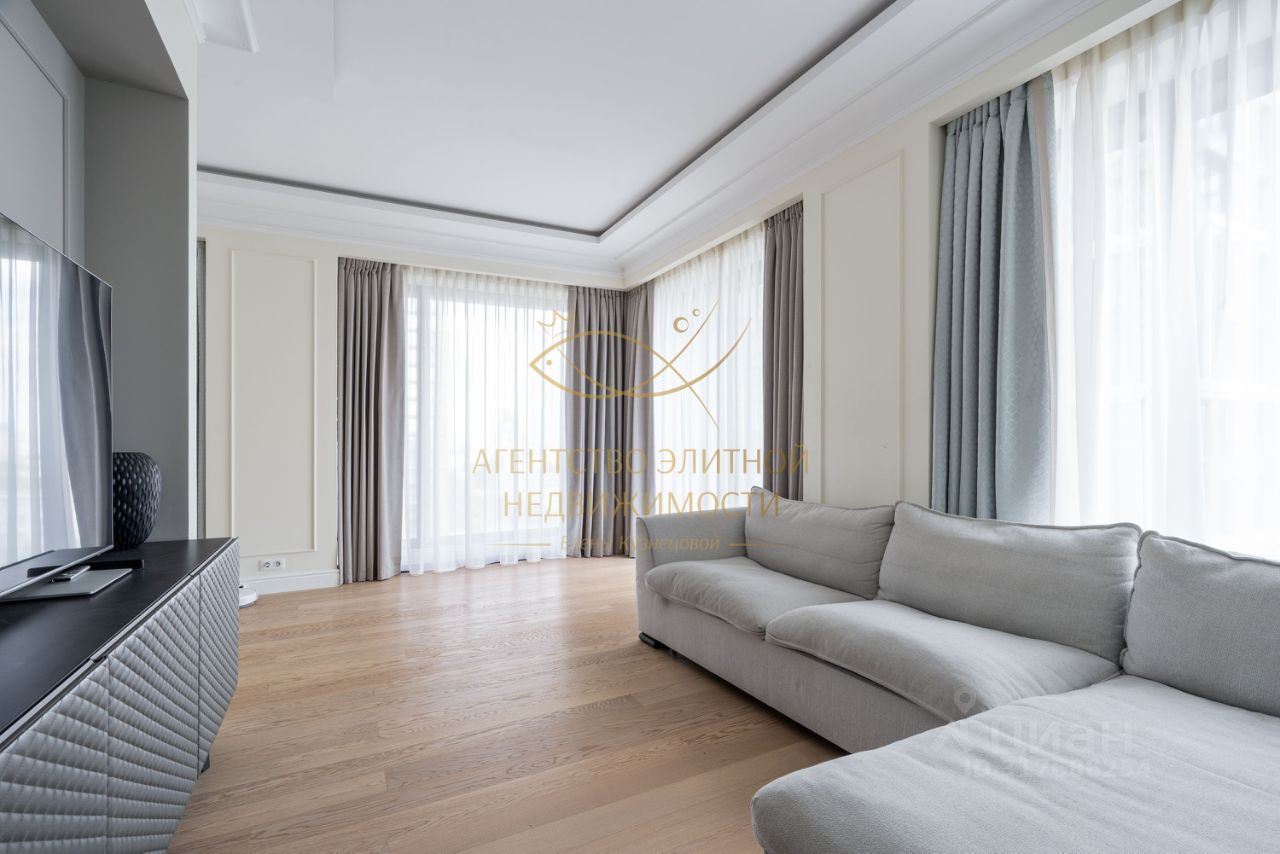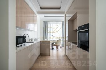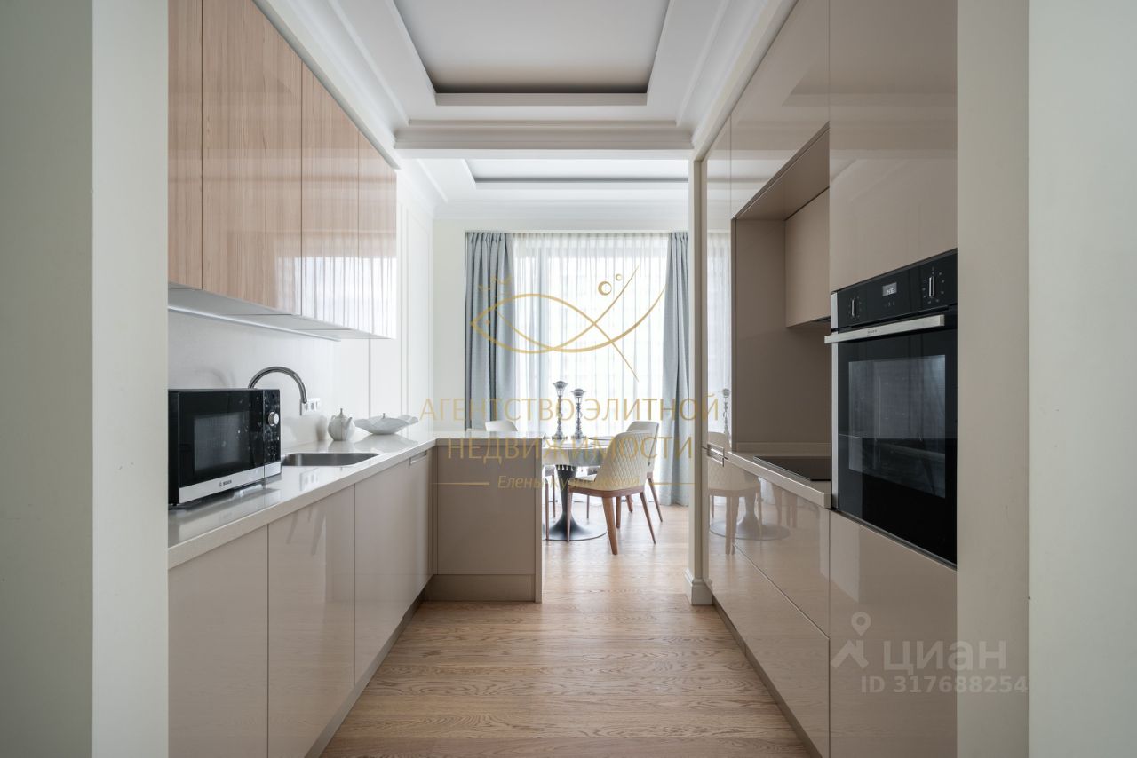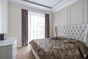Квартира полностью оборудована всей необходимой техникой европейских производителей. В кухне-гостиной находится большой стол с комфортными стульями. В зоне отдыха уютный диван. В спальнях кровати и гардеробная комната. Полностью оборудованная ванная комната и санузел. Большие панорамные окна открывают великолепный вид во двор.