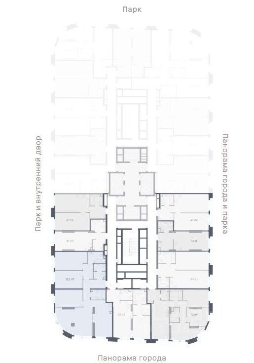 Высота потолков — 3,2 метра, большие окна в пол. В квартирах предусмотрены инженерные решения для акустического комфорта и чистый воздух благодаря близости парка и современным системам вентиляции.