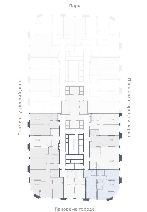Высота потолков — 3,2 метра, большие окна в пол. В квартирах предусмотрены инженерные решения для акустического комфорта и чистый воздух благодаря близости парка и современным системам вентиляции.