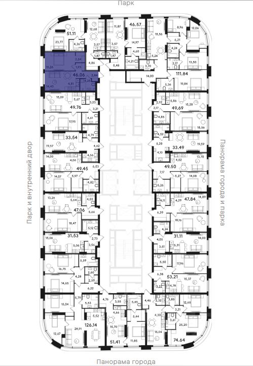Высота потолков — 3,2 метра, большие окна в пол. В квартирах предусмотрены инженерные решения для акустического комфорта и чистый воздух благодаря близости парка и современным системам вентиляции.