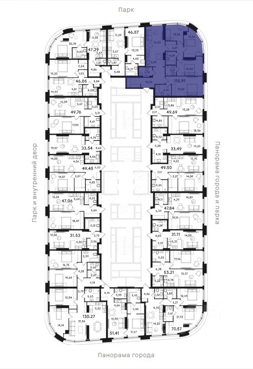 Высота потолков — 3,2 метра, большие окна в пол. В квартирах предусмотрены инженерные решения для акустического комфорта и чистый воздух благодаря близости парка и современным системам вентиляции.